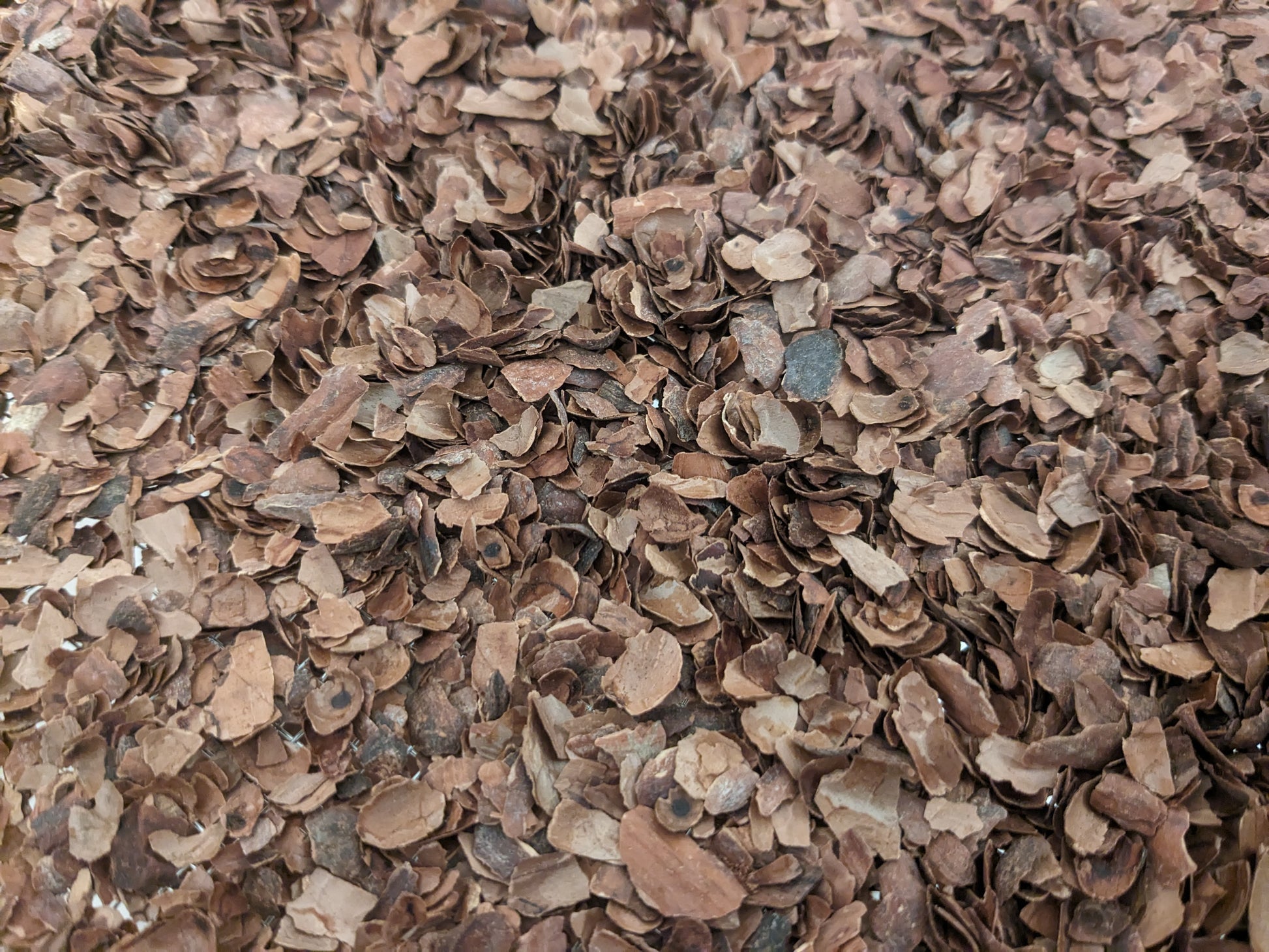 Je retire l'écorce de cacao lors de l'étape du vannage, après la torréfaction et avant le broyage et conchage du grué de cacao.